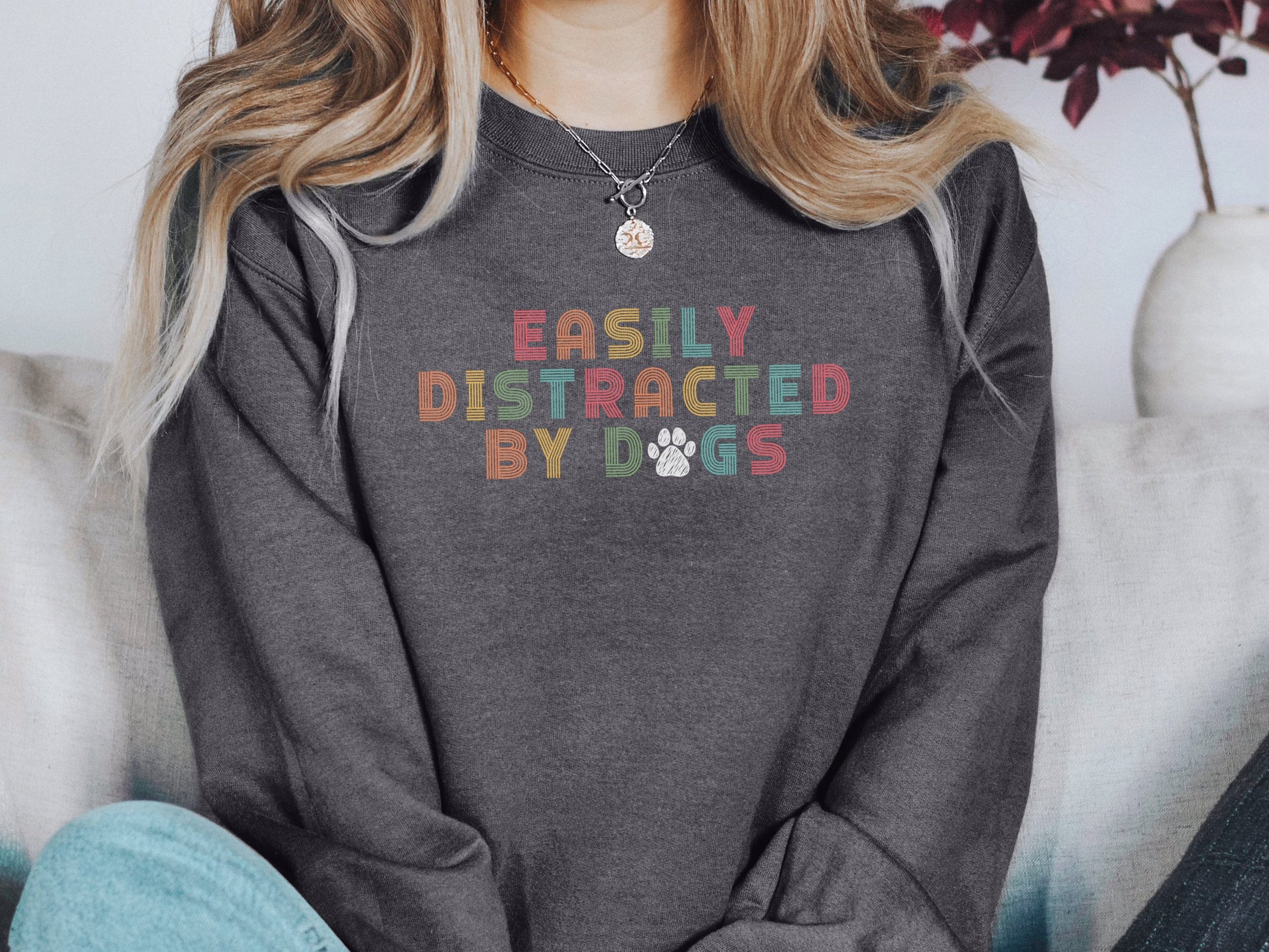 Retro Easily Distracted by Dogs Sweatshirt