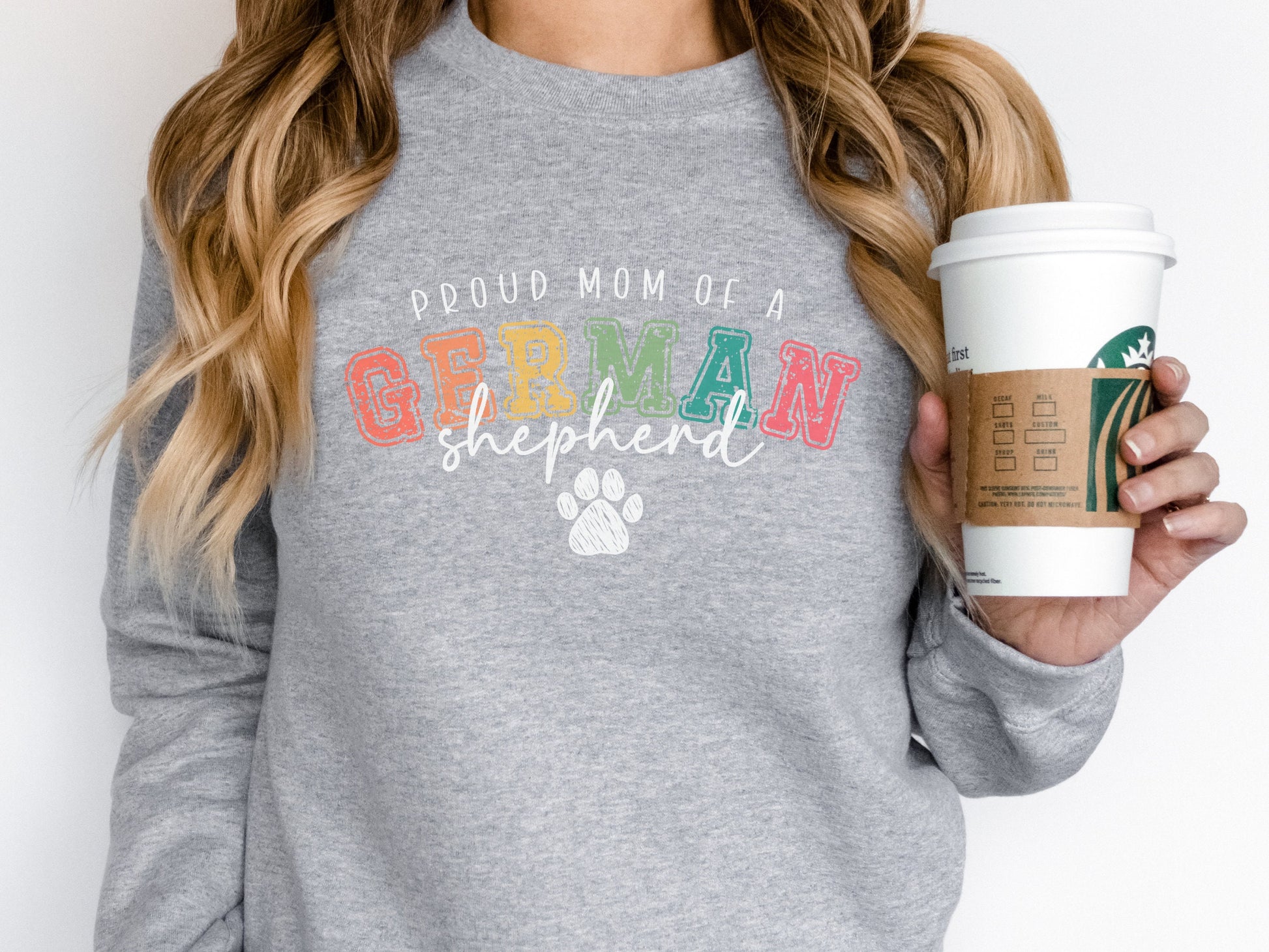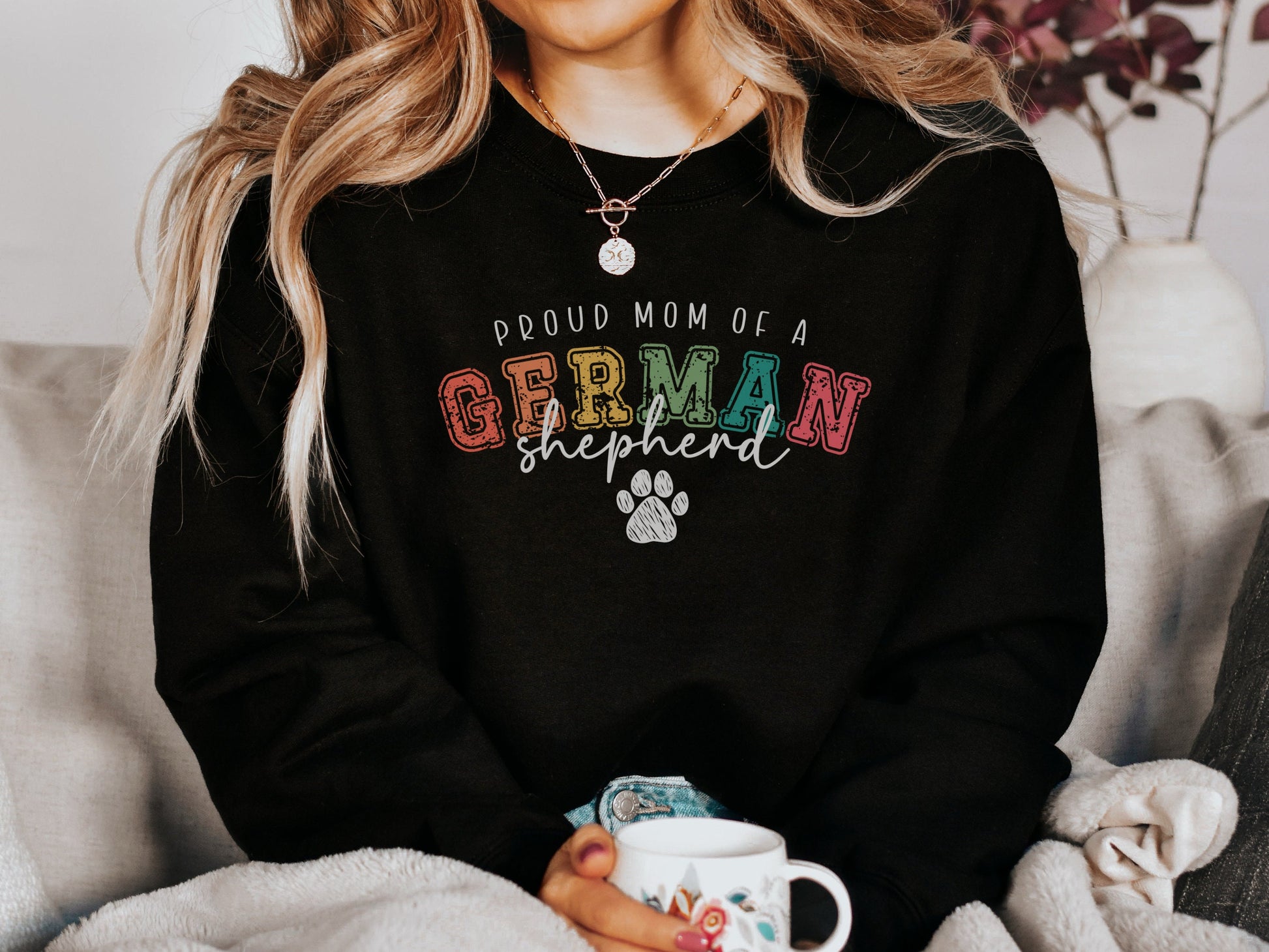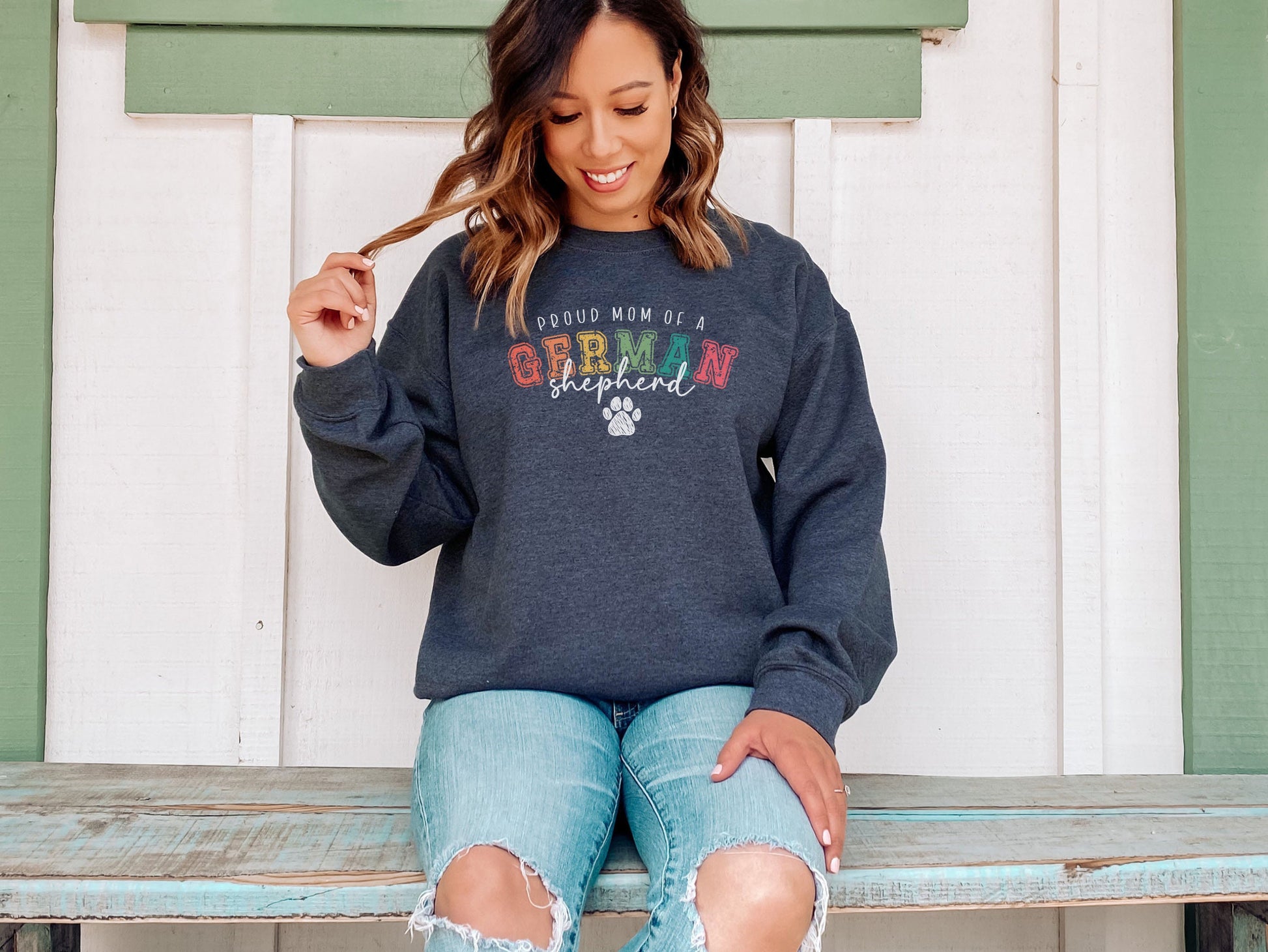 The perfect retro style sweatshirt for a trendy German Shepherd dog owner! It's made from a soft, midweight cotton-blend fabric for easy layering when it gets chilly or throw it on alone for comfort. Full of style and comfort, we think this sweatshirt has all the qualities a German Shepherd dog mom could ever want.